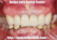 また、綺麗に直すにあたって真ん中の歯がとても長かったので、まずは仮歯で理想と思われる形態にした物を付けて頂き、咬み合わせや見た目を日常生活で体験して頂いた後に最終形態を決定しました。