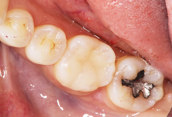 まず虫歯を削って形を整えます。セラミックは厚みがないと割れてしまうため、どのような形で詰め物を作るかはとても重要です。また、Cerecシステムではコンピュータで形を読み取ってセラミックを削り出すため、詰め物の形は出来上がりの精度にも大きく影響します。